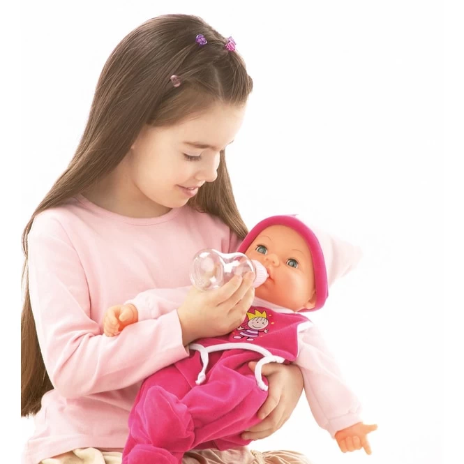 Die tolle Hello Baby Puppe trinkt und schmatzt glücklich beim Trinken wie ein richtiges Baby. Wenn man ihre Hand drückt, sagt sie „Papa“ und „Mama“. Wird sie am Bauch gekitzelt, fängt sie an zu lachen.