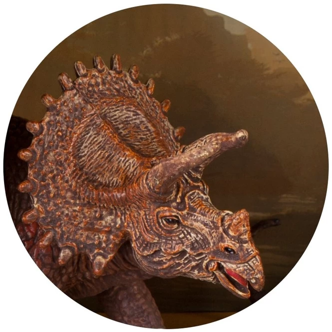 - Größe: Baby Tyrannosaurus ca. 9 cm, Triceratops ca. 18 cm, Saichania ca. 14 cm