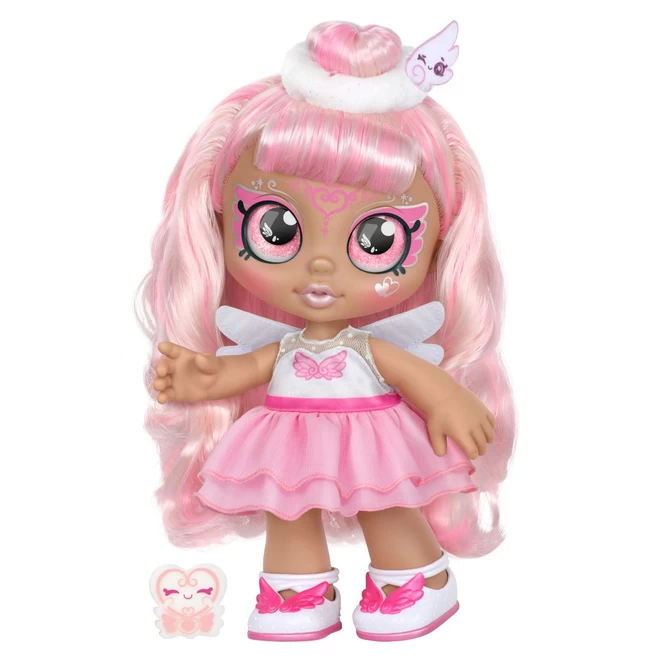 Ihre versteckte Gesichtsbemalung lässt sich auf magische Weise enthüllen! Angelina hat sich in einen wunderschönen rosa Engel verwandelt. In ihrem hübschen rosa-weißen Engelskostüm mit Flügeln und passendem Engelsflügel-Haarband sieht sie einfach unglaublich niedlich aus! Ihre kleinen weißen Schuhe mit pinkfarbenen Flügeln vervollständigen den Look! Angelina möchte dir etwas Magisches zeigen. Sie hat einen ganz besonderen Zauberchwamm in Herzform dabei. Wenn du ihren Schwamm in eiskaltes Wasser tauchst und damit über Angelinas Stirn wischst, enthüllst du ihre wunderschöne Gesichtsbemalung! Sie hat große, glitzernde Augen und leuchtend rosa Haare, die zu ihrem Outfit passen. Die Kleidung und Schuhe von Angelina können problemlos von kleinen Kinderhänden ausgezogen und gewechselt werden. Angelina ist die große Schwester von Winnie Wings. Gemeinsam haben sie beim Spielen besonders viel Spaß. Es gibt vier neue Kindi Kids-Puppen aus der Reihe „Magisches Verkleiden“ zum Sammeln. Mit ihren Outfits und Accessoires passen sie alle perfekt zu ihren kleinen Kindi Kids-Schwestern! Neben Angelina Wings als Engel kannst du auch noch ihre besten Freundinnen entdecken: Jessicake als Fee, Tropicarla als Meerjungfrau und Marsha Mello als Einhorn! Mit diesen niedlichen und farbenfrohen Puppen können Mädchen fantasievolle Abenteuer erleben. Auf geht’s! Wer hat Lust auf eine Runde … magisches Verkleiden?